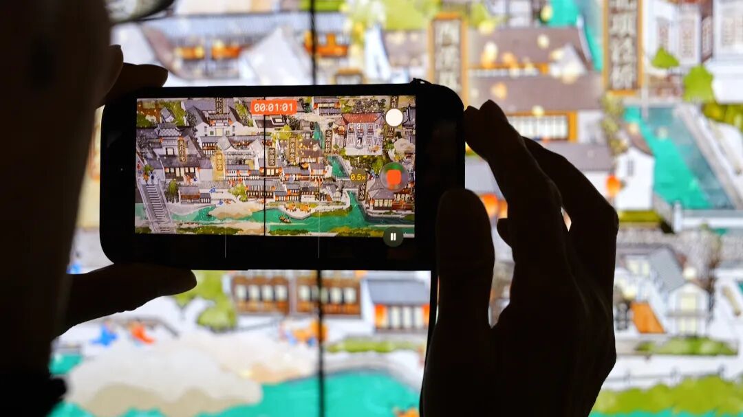 值得一提的是,这幅画卷以数字动态形式呈现。五个屏幕联缀成卷,人物行走、流水潺潺、舟楫轻摇……科技让历史街区“活”了起来。“它是一个会变化的图景。”李丹表示,“我们期待随着西大街的持续更新,这幅画也能拥有自己的生长与演变。”