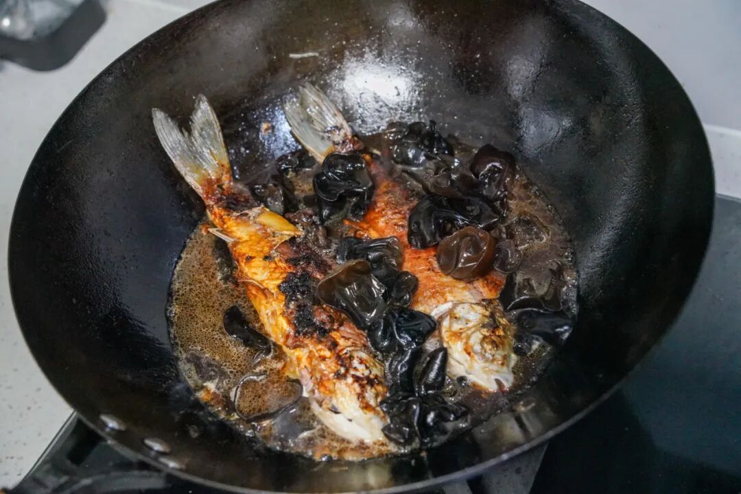 冰糖入锅,很快融化在汤汁里。接着倒入清水,水量刚好没过鱼身。小火慢炖一刻钟,揭开锅盖的瞬间,浓郁香气扑面而来,让人忍不住直咽口水。这时候转中火收汁,洪阿嬢拿着锅铲,不停地把滚烫的汤汁往鱼身上浇。“这样浇一浇,鱼肉里外都入味,吃起来才更香!”