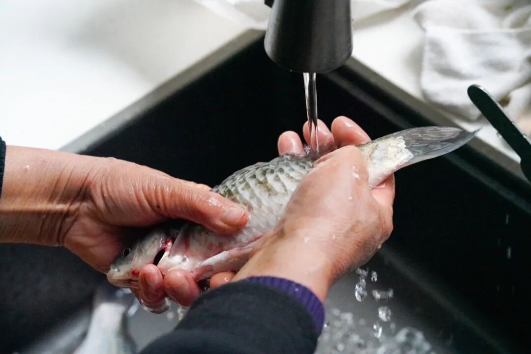 “做红烧鲫鱼,去腥是第一步,也是最关键的一步!”洪阿嬢一边麻利地刮着鱼鳞,一边笑着念叨。鲫鱼要里外都收拾干净,鱼鳞、鱼鳃、内脏一个都不能落下,尤其是鱼肚子里那层黑膜,“那可是腥味的主要来源,不刮干净,再好的调料也盖不住!”