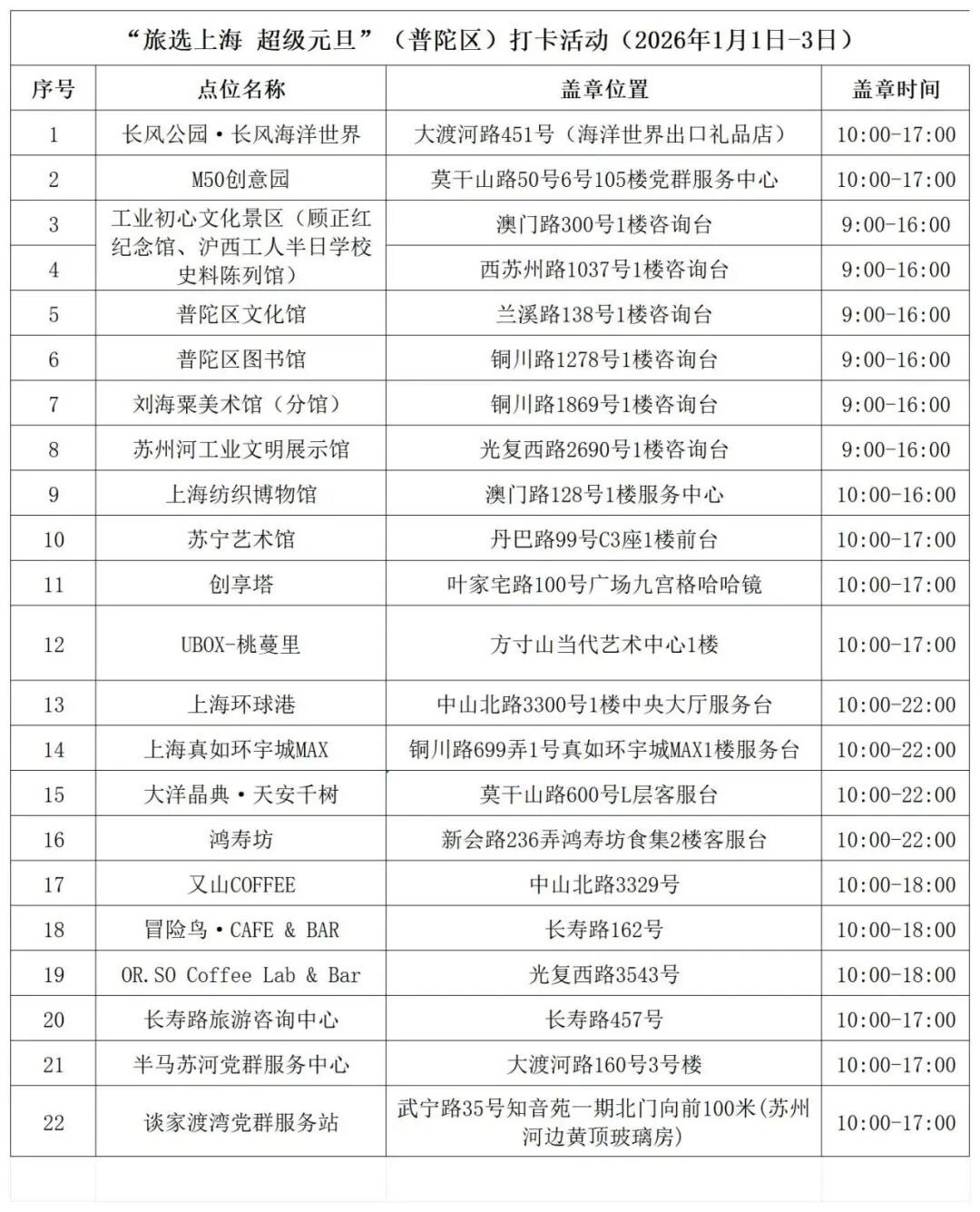 2026年元旦假期去哪儿玩?普陀区第一届旅游攻略超级大赛(第一季)“旅选上海 超级元旦”打卡活动重磅来袭!22个精选点位、2条特色线路、超多限定好礼,邀你一起在苏州河畔辞旧迎新,解锁普陀“半马苏河” 的文旅新体验!