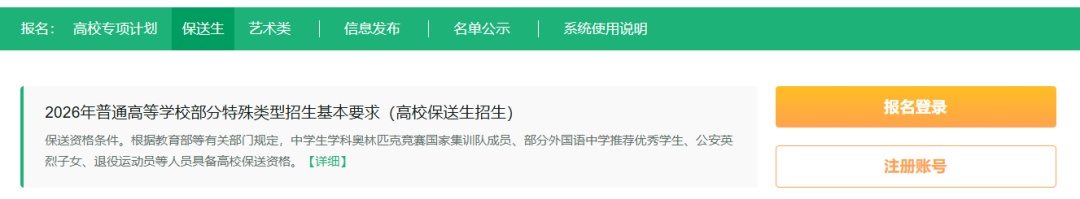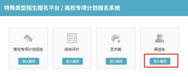 2. 点击“特殊类型招生信息服务平台”,进入页面,选择“保送生”,在报名平台中点击“报名登录”,然后在页面中选择“保送生”,并点击“进入报名”。