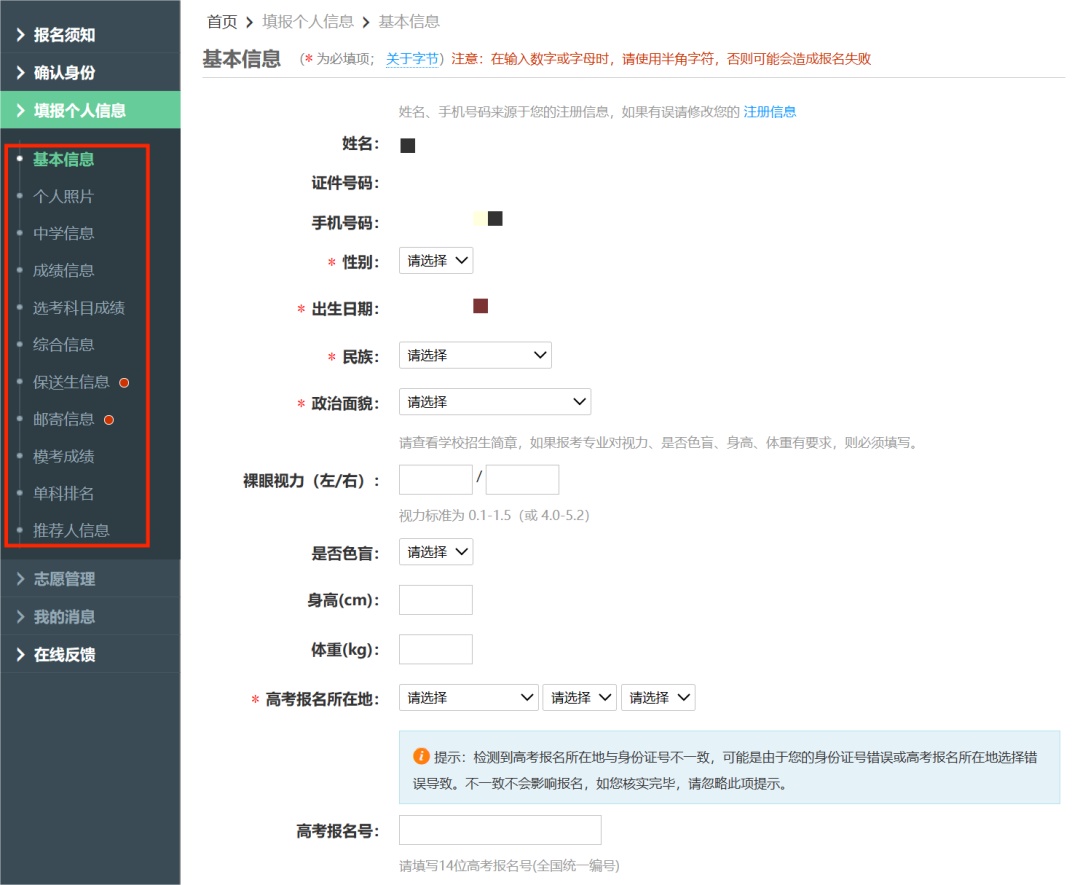 确认考生证件号码和考生姓名,如信息有误,请遵循系统内提示进行操作。