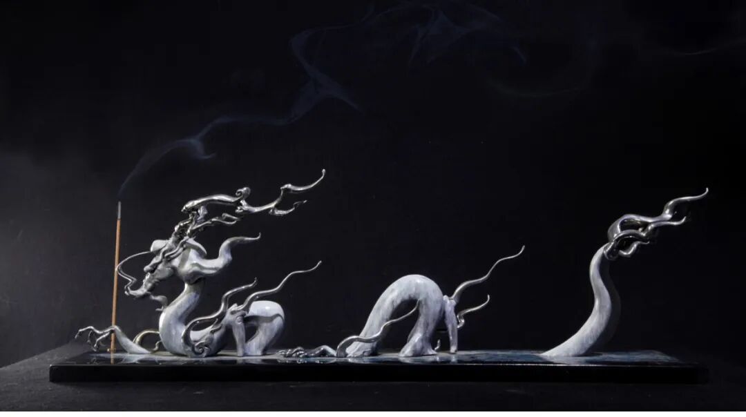 “当山海遇到香,是我们一切的开始。”主理人这样说道。雕塑家赵川,毕业于中央美术学院,多年来尝试在传统与现代之间搭建一座可感知的桥梁。本次展出的作品,以《山海经》神兽为灵感载体,融汇非遗大漆的温润与铜铸的厚重,让雕塑不再是静置的观赏对象,而成为可互动、可沉浸的潮流艺术载体。