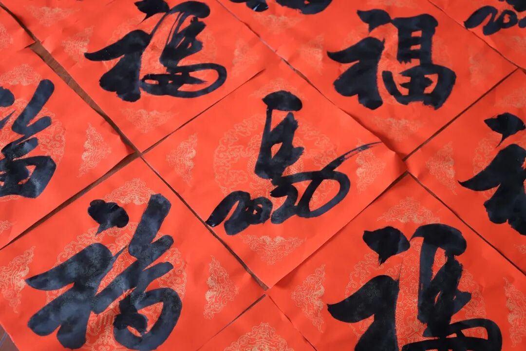 而最受欢迎的,还是陆德辉每年都会创作的“生肖福字”。这次,他在传统“福”字的基础上,巧妙融入“马”的形态:或昂首奔腾,或回首蓄势,线条与字形相互呼应,既保留了“福”字的完整结构,又增添了生动意趣。墨迹未干,教室里已响起一片掌声。