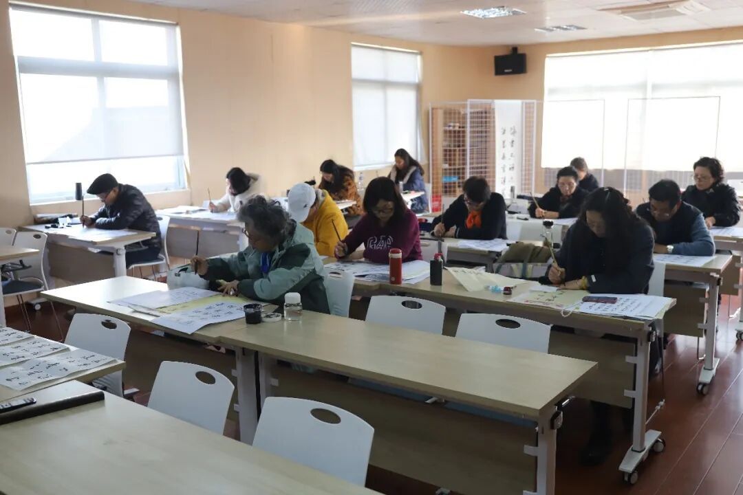 在这间社区学校的书法教室里,不少学员已跟随陆德辉学习多年。学员张连平便是其中之一,自第一次走进课堂起,已连续学习了16年。“跟着陆老师写字,不只是学书法,更像是在学一种生活方式。只要他还在社区学校教,我就会一直学下去。”张连平朴实的话语,道出了许多学员共同的感受。