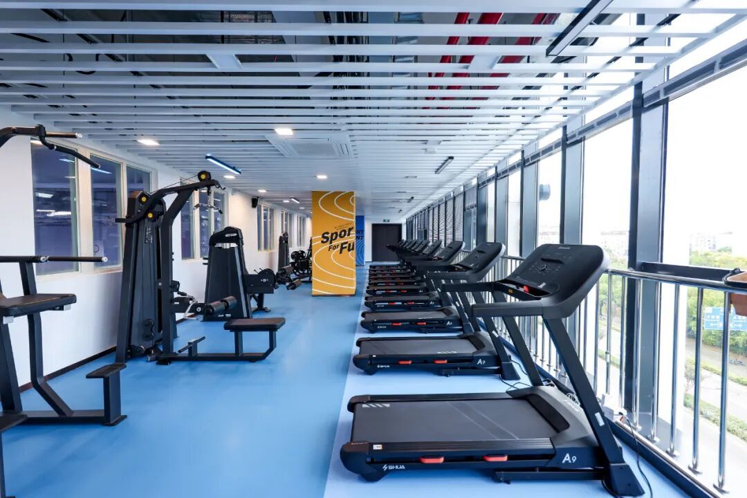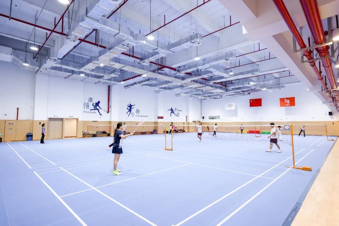 三楼的综合球馆占地面积约760平方米,设有6片标准场地,配备A级专业运动地板与6.0毫米厚地胶。四楼的市民健身房分为力量训练区和有氧训练区,配备跑步机、椭圆机等专业器械,还推出塑形、体重管理、康复拉伸等锻炼课程,三楼团操房则带来活力杠铃操、动感踏板操、普拉提等团课,让市民获得运动的乐趣。