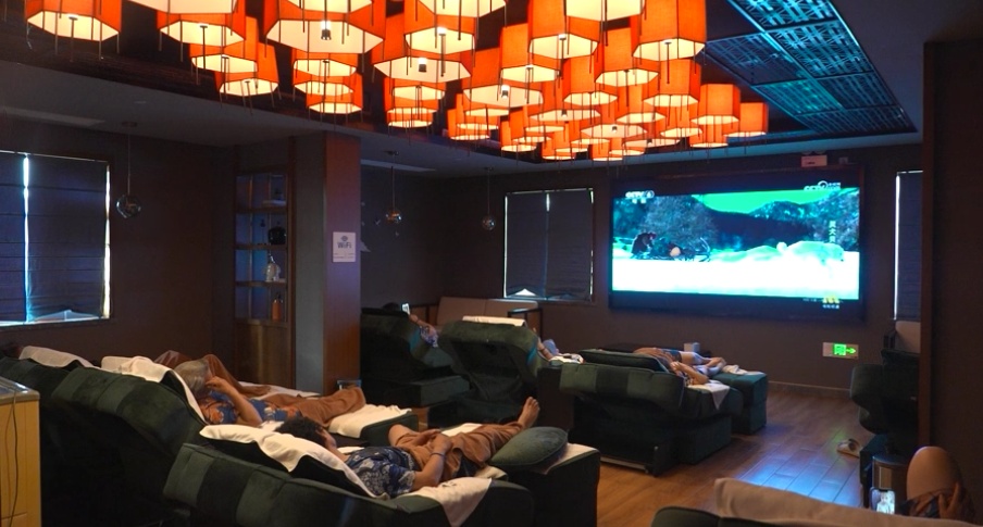 室内的休闲配套也很完善,影音厅、按摩SPA、桑拿房等功能区域一应俱全,满足游客多样化需求。一位崇明本地市民表示:“海上花岛景区是我们很喜欢的休闲地,适合全家老小来游玩,我们基本每个月都会来。”