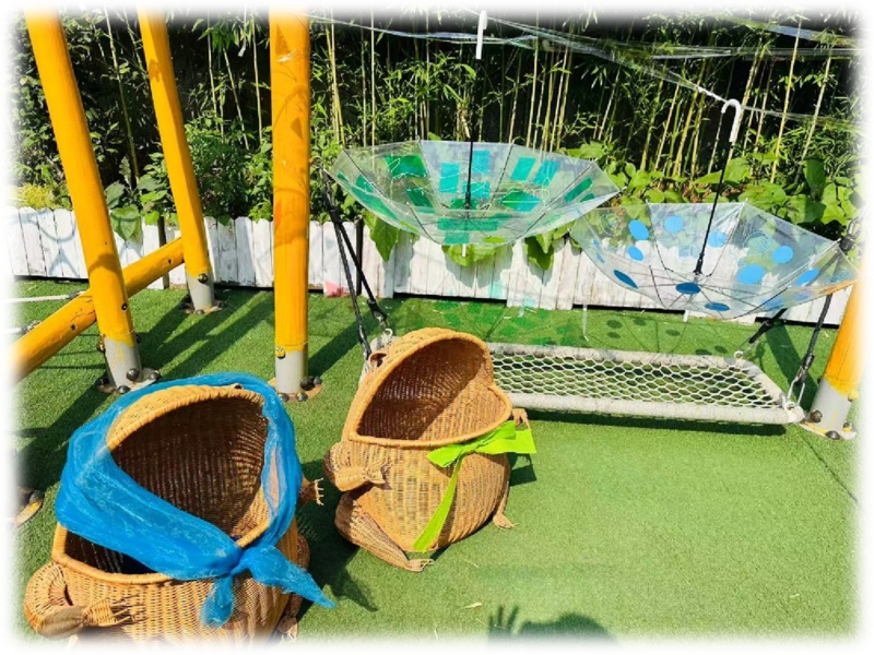 在同一份材料的运用上,星光幼儿园也展现了巧思。园内原本用于投掷游戏的五颜六色小伞,在老师们的观察与研讨后“变一变”,成了三把同一颜色的小伞。看似简单的改变,却引发了孩子们不同的行为反应——他们开始观察伞上的颜色,并自发出现了初步的匹配行为。