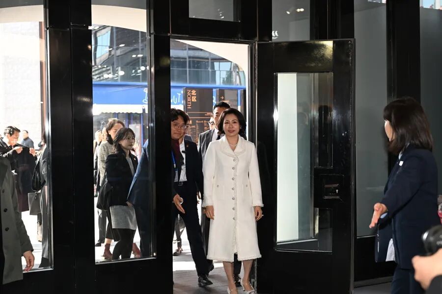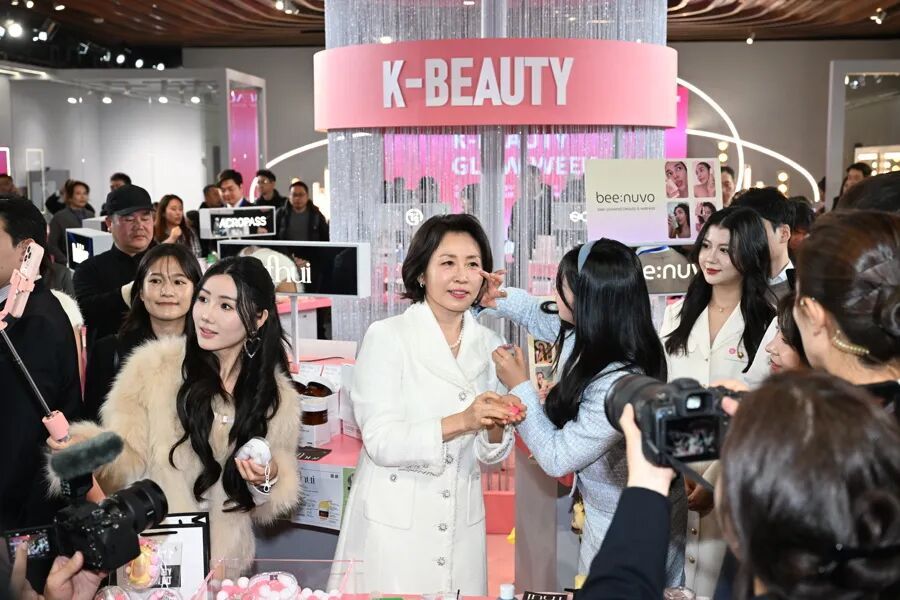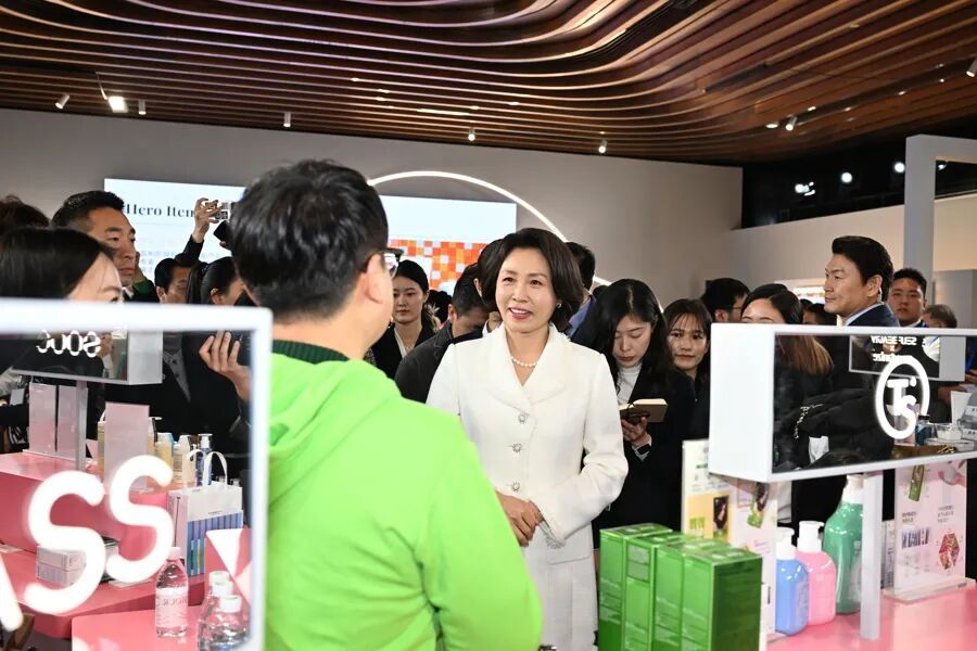今天(1月7日)上午,韩国总统夫人金惠景来到上海BFC复星艺术中心,参观“K-BEAUTY GLOW WEEK”活动,感受韩国美妆品牌产品。