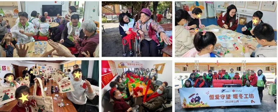 12月,“恒爱守望”暖冬工坊在昆明、济南、东莞、南京、成都、宁波、天津七个城市落地。活动聚焦长者精神关怀与儿童成长赋能,探访慰问当地独居空巢老人、新就业群体子女、困境儿童等弱势群体。志愿者们走进社会福利机构、社区街道,通过一起做游戏、编织围巾、开展手工创作等多种形式,为老人和孩子提供情感陪伴和支持,并捐赠了部分生活、学习用品,送上冬日温暖。