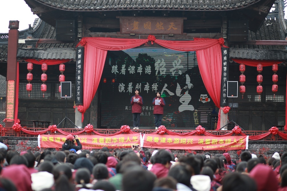 “‘跟着课本游绍兴·演着剧本绎人生’是我校一项持续多年的文化体验活动,以往通常在第二学期开展,今年由于学校作为春考考点,教学安排有所调整,我们将活动提前至本学期举行,既确保学生能完整参与这项深具意义的文化传承之旅,也为下学期留出更充裕的教学空间。我们始终相信,这样的活动不仅是课堂的延伸,更是一种鲜活的文化教育,让学生在行走与演绎中,真正触摸历史脉络、体悟文学温度,让经典作品中的人文精神代代相传。”松江一中党委书记郭宁伟说。