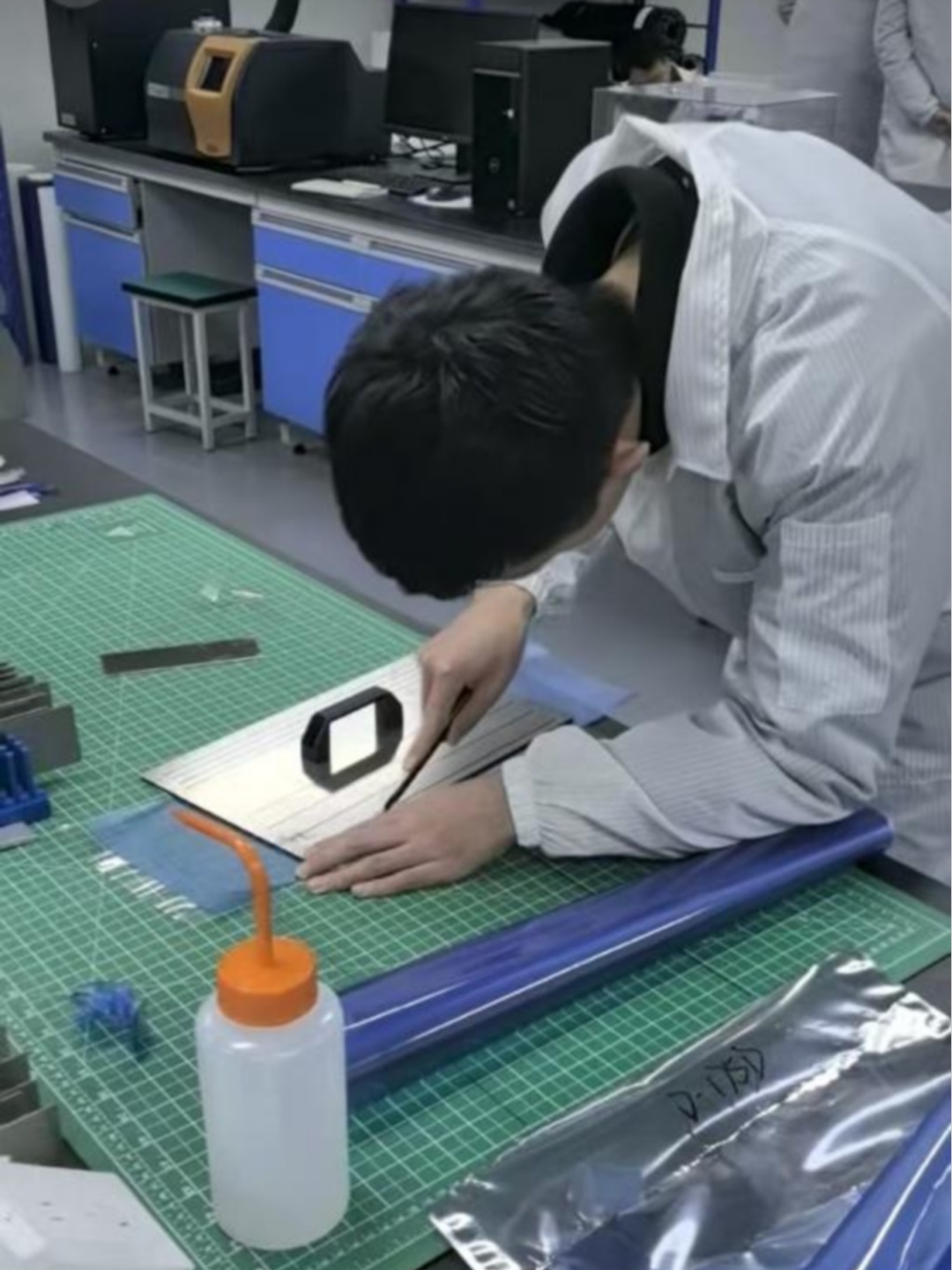 换上防尘服、防尘鞋,崔晋豪进入了工厂的实验室,“宽敞明亮的无尘车间里,整齐排列着一台台从未见过的精密设备,指示灯闪烁,身穿全套防护服的技术人员专注地操作着仪器,整个环境安静而有序,充满科技感。”