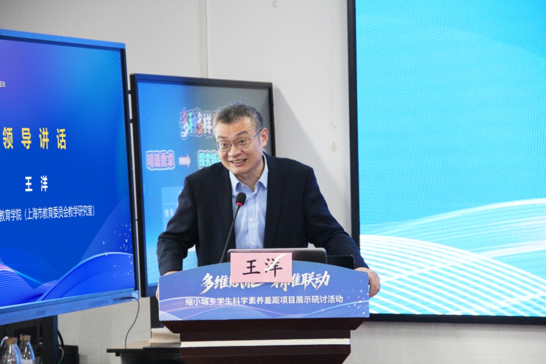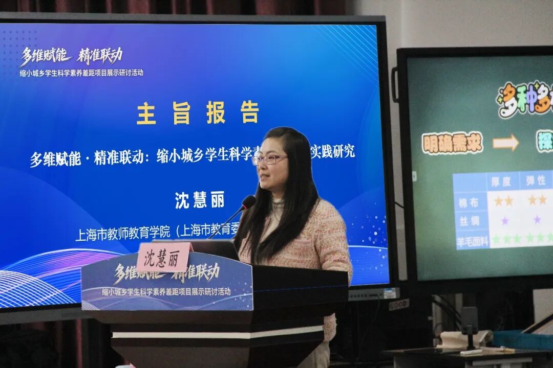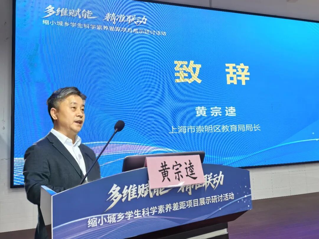 崇明区教育局局长黄宗逵在致辞中提出,近年来,崇明区构建了具有区域特色的“科学+生态”科学教育体系,“一是筑牢科学教育的主阵地,坚持以课堂为根基,鼓励乡村学校开发生态课程,将生态资源融入科学教育;二是汇聚科学教育新动能,打破校园边界,联合区内共建单位,让乡村的孩子在家门口就能够开展科学实践;三是打造活动平台强实践,打造面向全区学生的实践平台,帮助他们拓宽眼界、建立自信;四是拓展课后服务新路径,让乡村的孩子从课堂走向自然空间。”