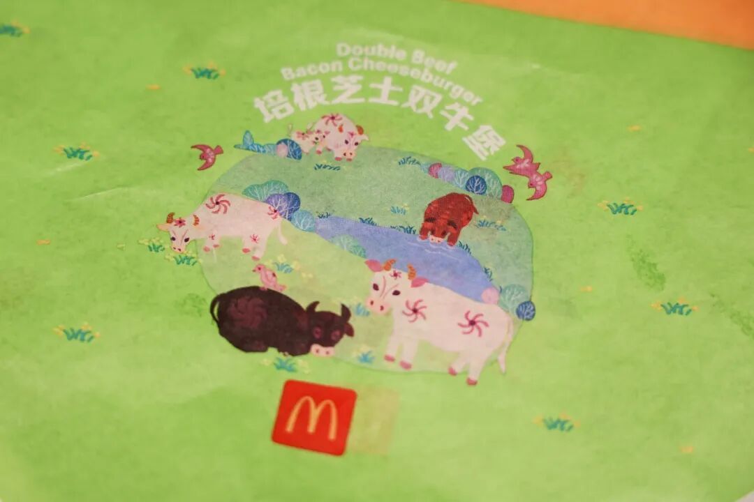 如今,印有这幅农民画图案的包装纸已经裹着热气腾腾的牛肉汉堡,走进了全国各家麦当劳门店。