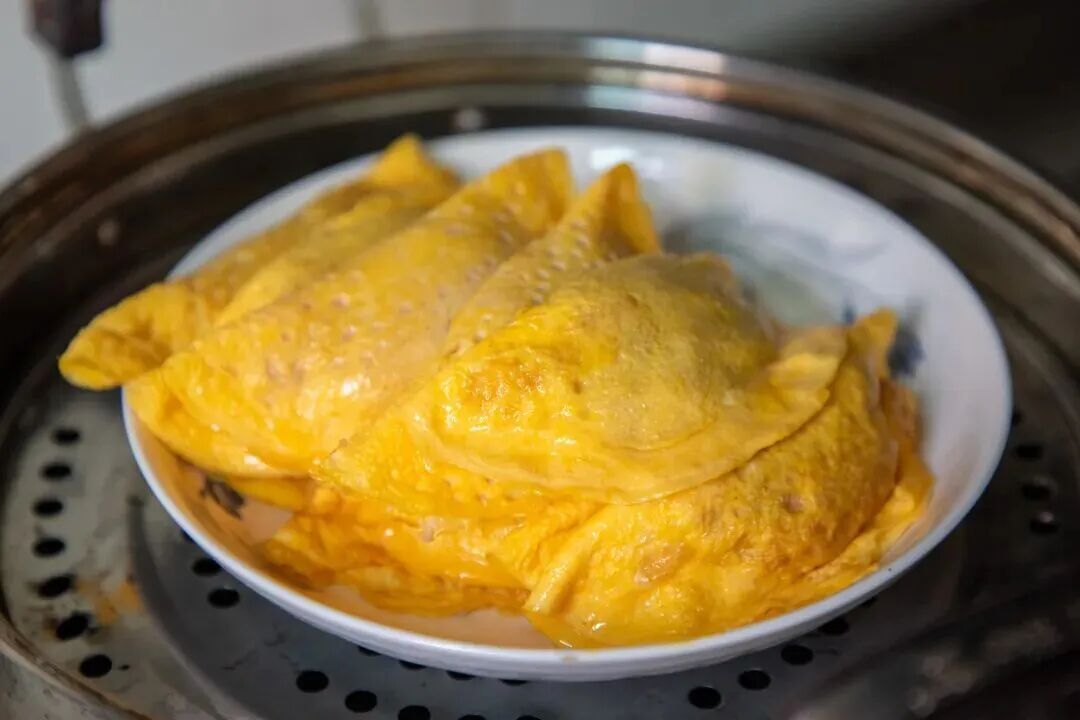 陶阿姨透露,很多人会使用鸡蛋制作外皮,但农家蛋饺往往更偏爱用鸭蛋。这样做出来的外皮不仅能兼顾柔嫩的特性,还更加金黄饱满、韧性十足。