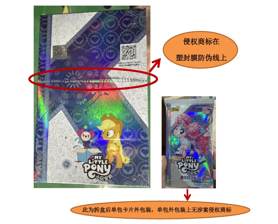 2024年11月,嘉定区市场监管局在查办一起A公司涉嫌侵犯他人注册商标专用权案件时发现,涉案商品“MLP-YH10-HY005小马宝莉-友谊永恒卡-辉月包-第5弹(规格:36盒*18包*6张/箱)”系A公司从B公司处购进,嘉定区市场监管局对上述两家公司均予以立案调查。