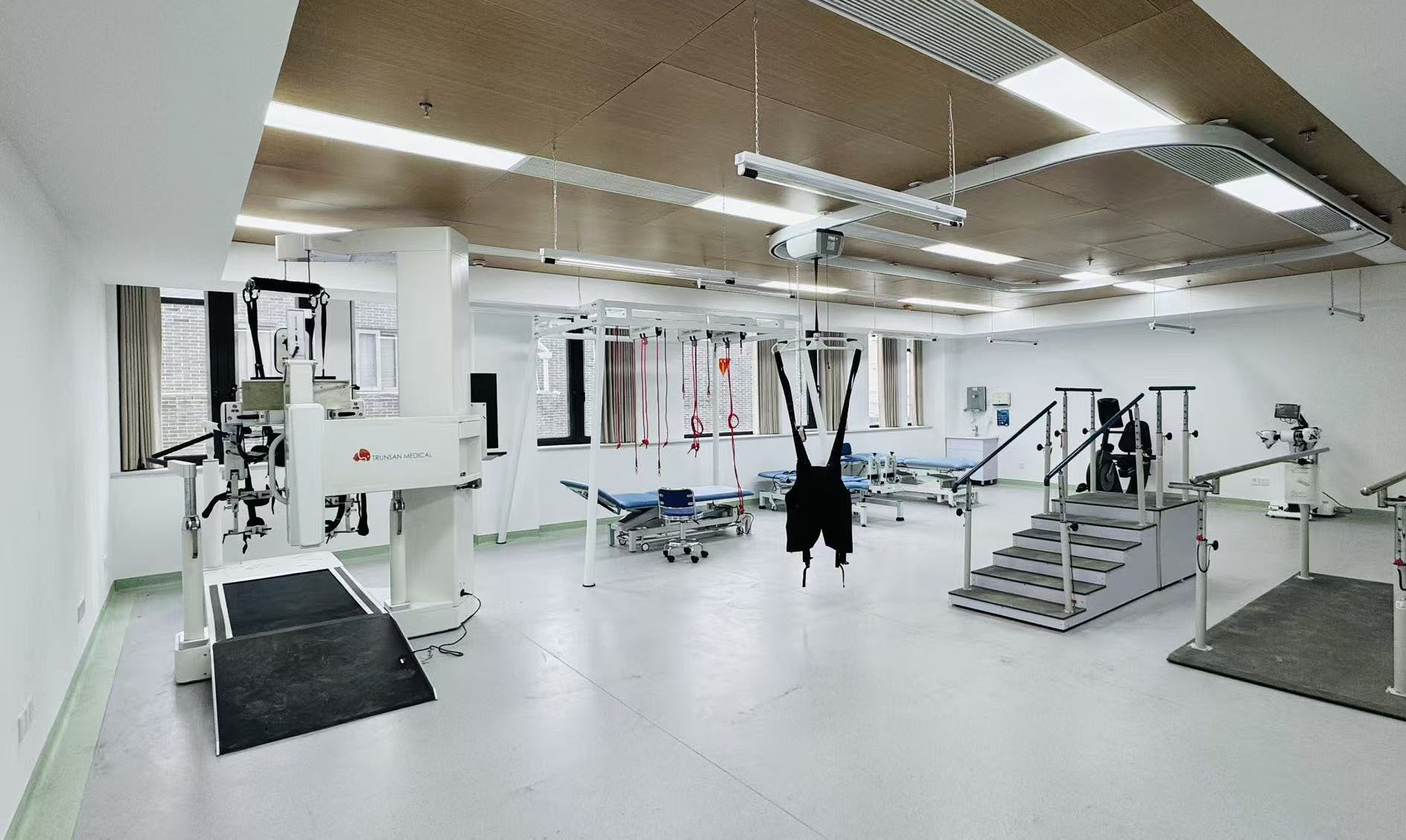 二楼:示范性社区康复中心,拥有物理治疗、作业治疗、言语治疗等功能区,配备先进康复设备,空间明亮宽敞,为各类功能障碍患者提供专业生理、心理康复服务。