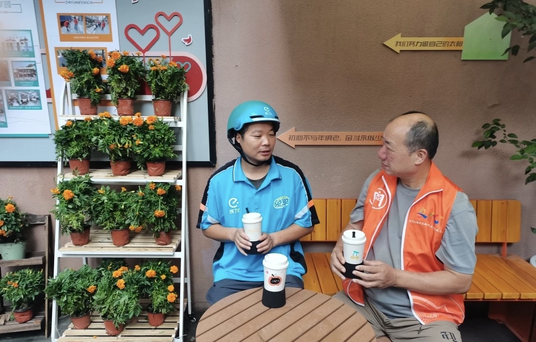 这种“双向服务”让驿站迅速从“能落脚”升级为“愿停留”。白领烟民有了专用休憩长椅,自觉将烟蒂扔进灭烟柱;骑手进来能喝口热水、上个厕所、充会儿电,主动把车辆停得整整齐齐;傍晚时分,等孩子的家长也进来歇脚,和骑手聊聊家常。一个微空间,微妙地重塑着街区人际关系。