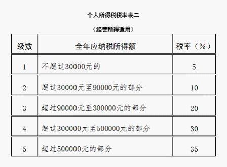 经营所得,以每一纳税年度的收入总额减除成本、费用以及损失后的余额,为应纳税所得额,适用百分之五至百分之三十五的超额累进税率。