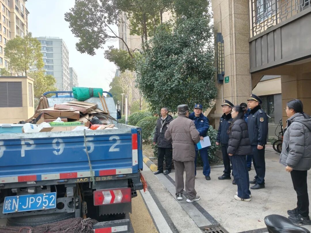 在沟通过程中,队员得知老人在附近的工业区内租有一间厂房,便建议将塑料制品搬至厂房内,这样既能满足他的研究需求,又能消除楼道的安全隐患。考虑到老人年事已高,在征得同意后,迅速组织人员、联系车辆,将堆积如山的塑料制品顺利搬至厂房。
