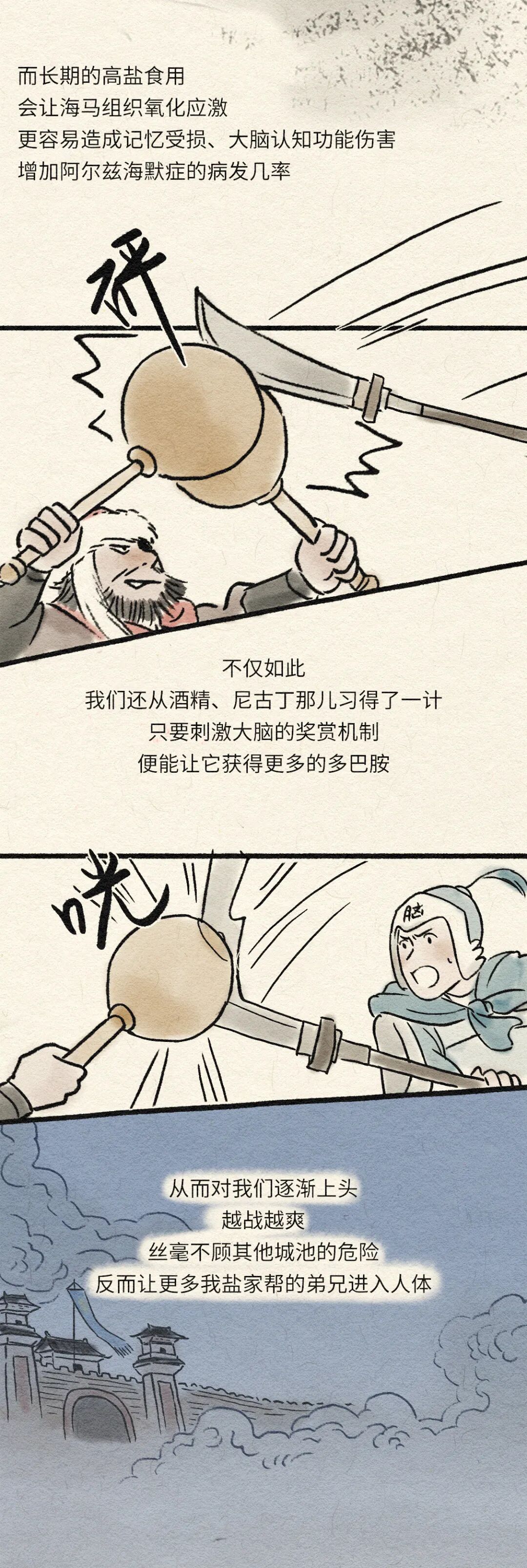 · 过量的盐分还会破坏血液渗透压,导致体内钠离子增多,身体水分流失,使皮肤缺水,越来越粗糙,皱纹和斑点增加。