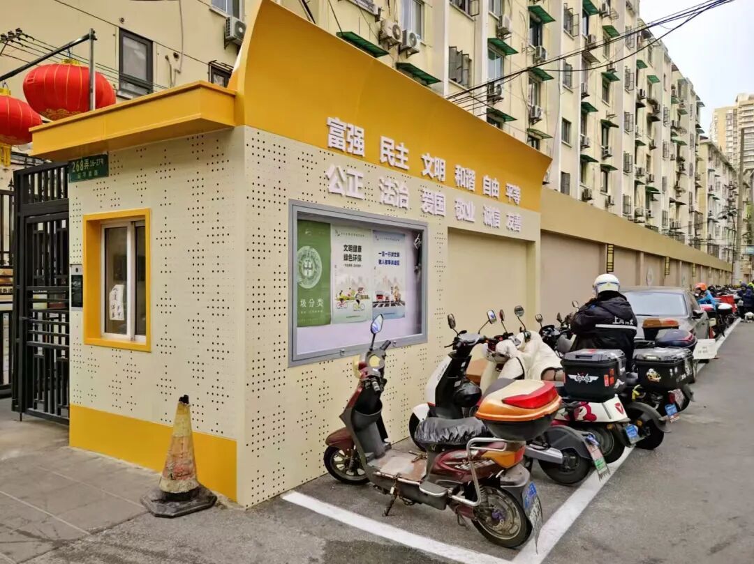 本次改造不仅提升“颜值”,更注重“内涵”,实现了从外观到功能的整体升级。围墙与立面显著改善,变电箱、垃圾厢房等设施也被赋予了艺术气息,巧妙融入赵巷文化元素,成为了街角巷尾的文化点缀。慢行空间、照明系统与街道家具同步优化,使小巷夜晚灯火温暖、行走安心,处处体现了细致的考量。