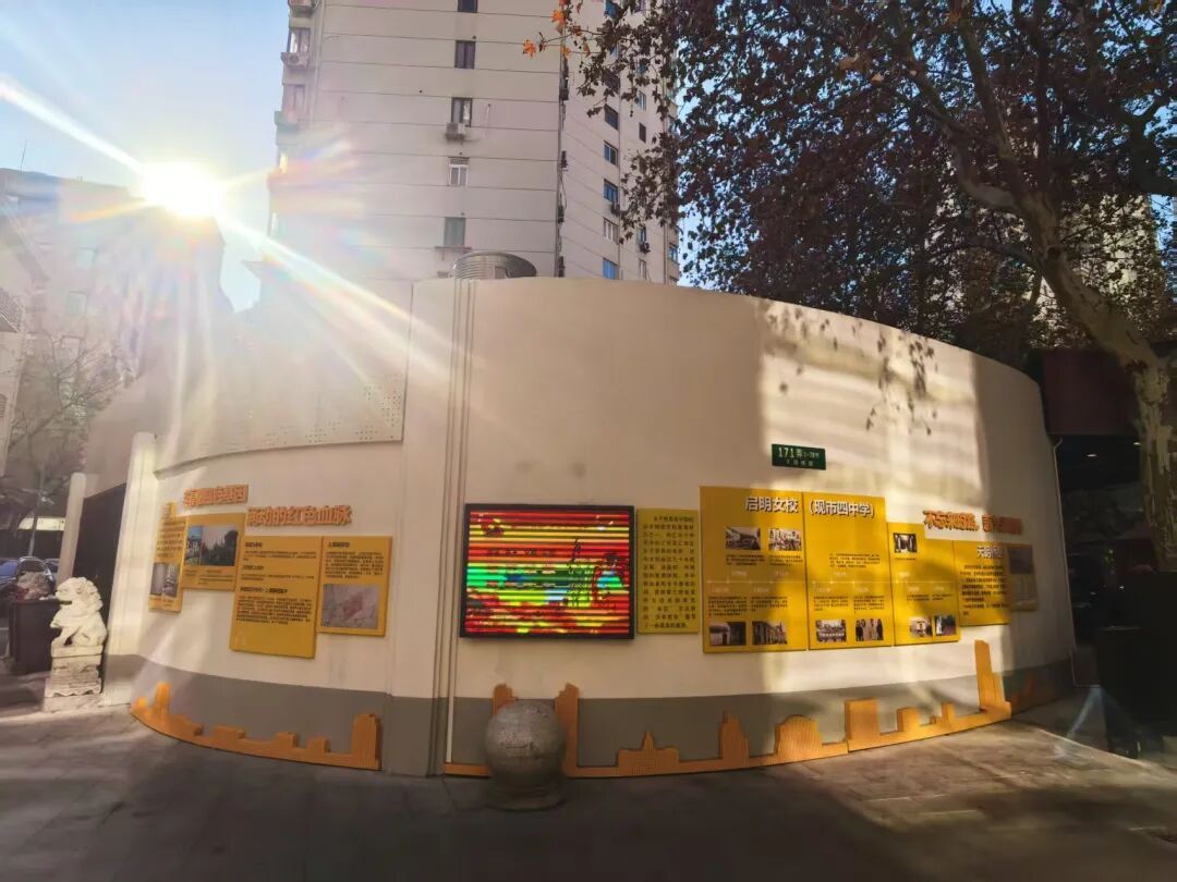 三条小巷同处于赵巷片区,彼此衔接,形似“π”字。依托该区域丰富的历史底蕴与复合的社区功能,街道围绕不同主题,打造出了特色鲜明、连贯有序的街巷空间,既有文化积淀,又不乏生活气息。南丹东路119弄的南丹东路入口段、天钥桥路171弄的天钥桥路入口段,如今已成为开放的社区文化展廊。围墙经过改造,采用冲孔金属板呈现赵巷老照片与红色历史片段。穿行于此,宛如步入时光长廊,在梧桐掩映间触摸城市记忆,感受历史余温。