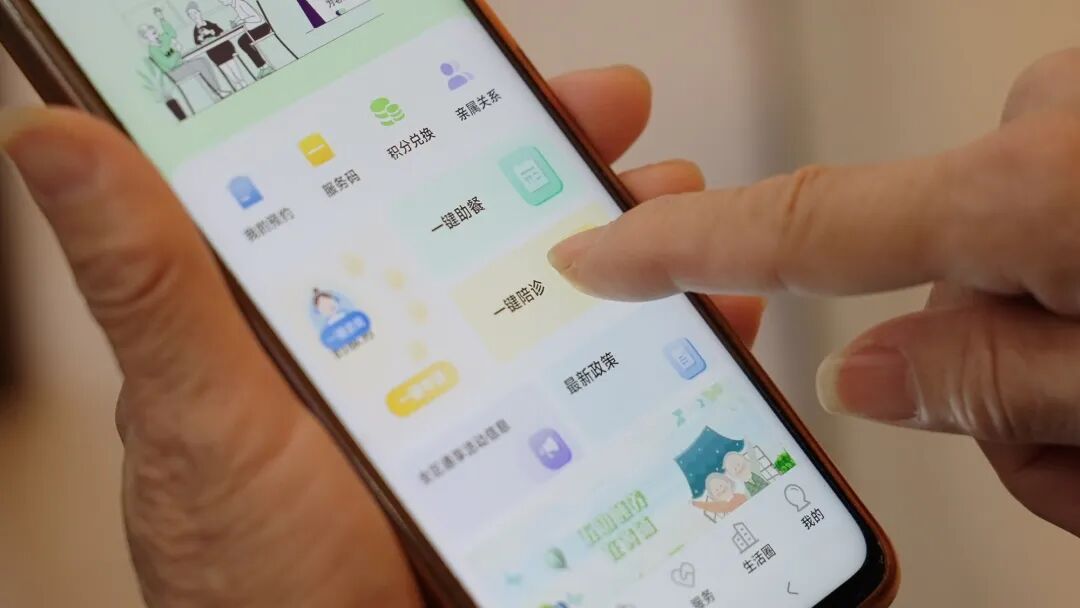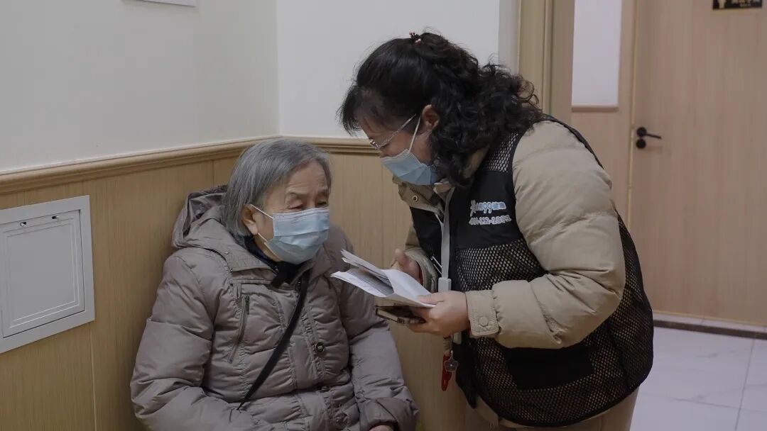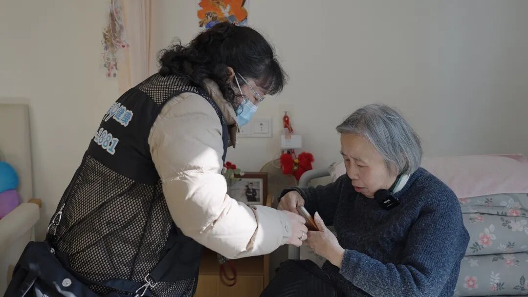 在黄浦区馨逸养护院,又到了78岁董阿姨每个月的配药时间,由于最近气温变化较大,董阿姨想到医院检查一下,让医生更新一下药物,由于子女不在身边,她让护工阿姨帮她在“五边颐养”小程序上预约了“一键陪诊”服务,选择好相关业务后,不一会,陪诊师狄雅美就按照约定时间来到了董阿姨的房间,“董阿姨,你预约了‘一键陪诊’是吗?我是你今天的陪诊师,我叫狄雅美,这是我的证件。”在确认信息后,陪诊师就开启了本次陪诊服务。