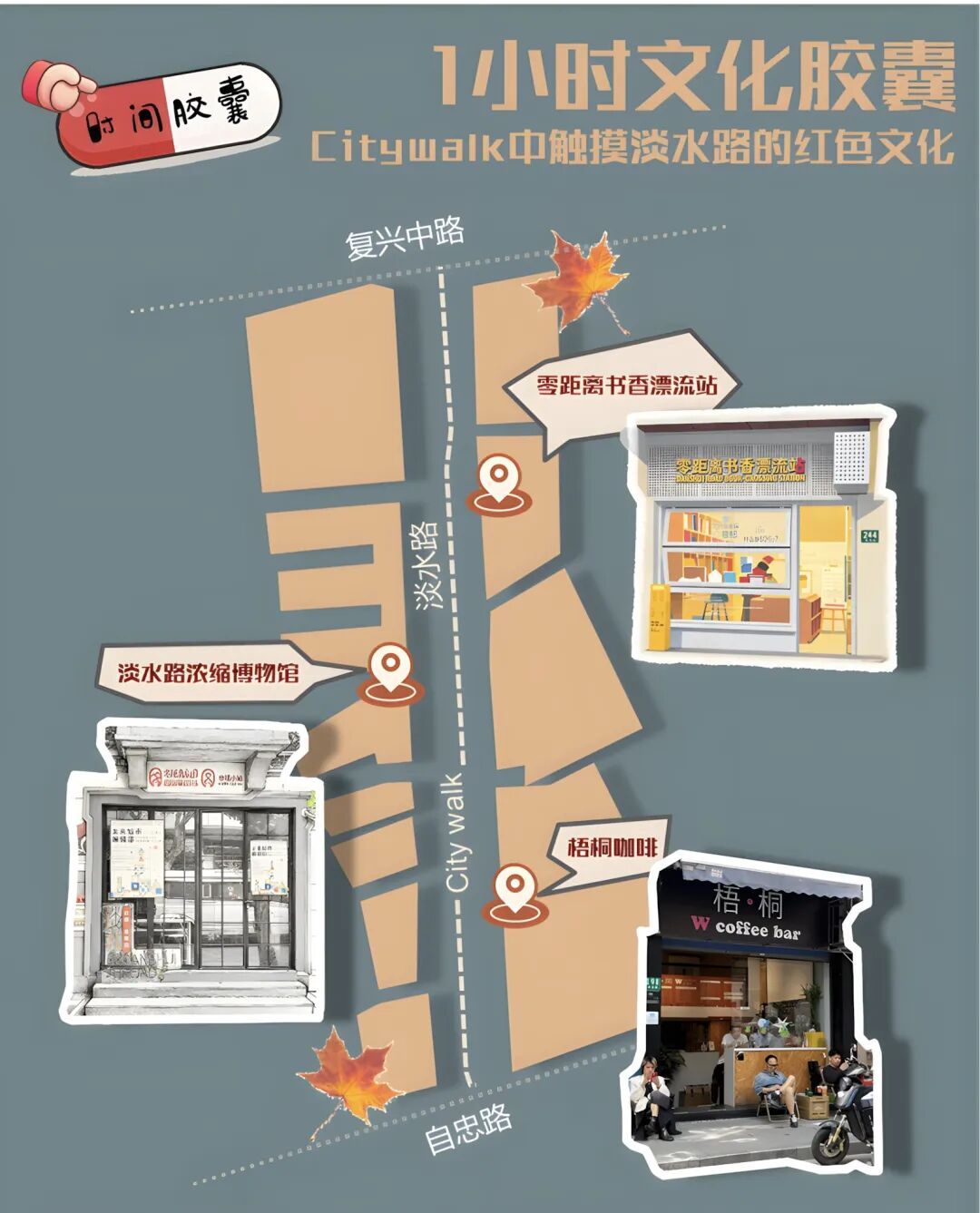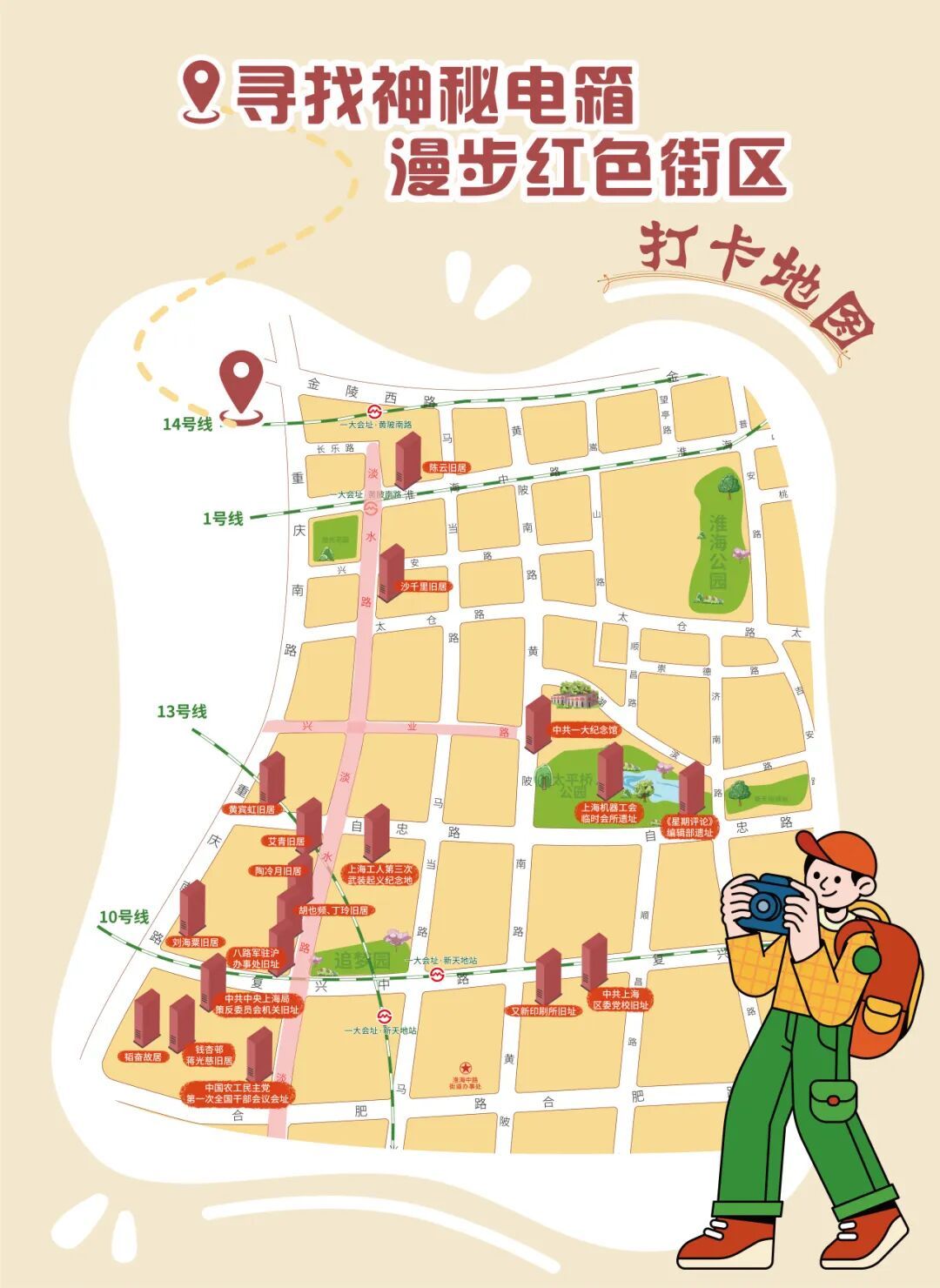 中共一大会址→新天地→兴业路淡水路路口→淡水路沿途“拆盲盒”→步行探访周边沿线红色点位