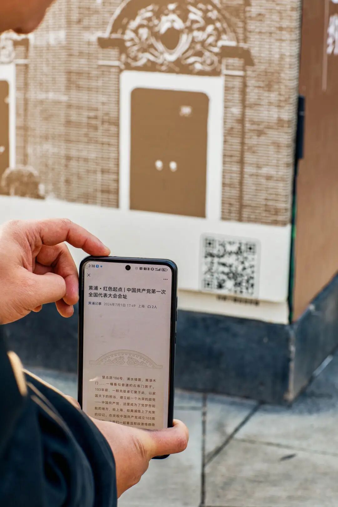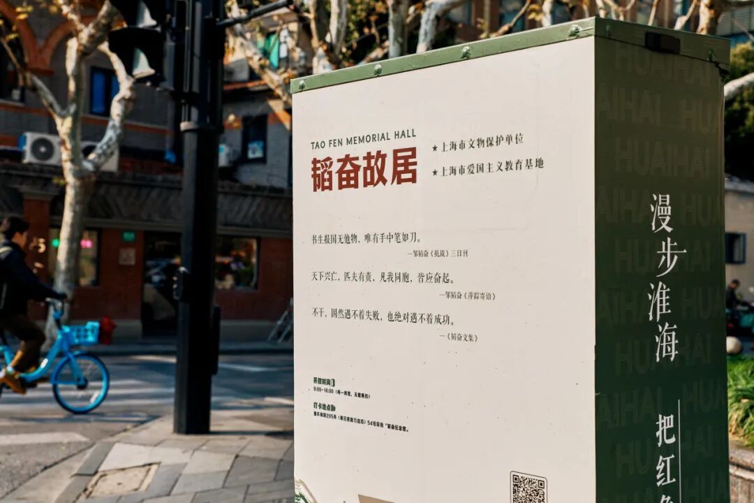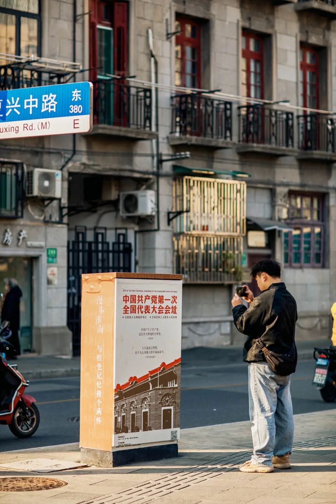 在这里,红色文化不再是书本里的文字、展馆中的陈列,而是触手可及的风景。你可以带着好奇心沿街漫步,在一个个电表箱前拍照打卡,解锁一系列红色点位的秘密;也可以对照海报上的点位地址信息,在老上海的烟火气中赴一场与历史的“约会”。