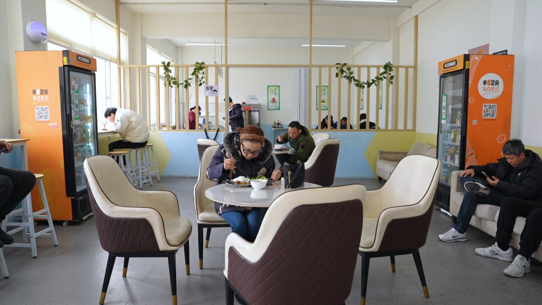 改造完后,休息室宽敞明亮,空调温度适宜,自助售卖机里食品饮料齐全,新增的食堂饭菜价格实惠,不少司机忙完后会在这里吃饭、休息。司机王先生就是慕名而来:“听说这边新开了一家,电价公道,就过来试试。环境确实不错,虽然过来要二十几分钟,但觉得挺值的。”