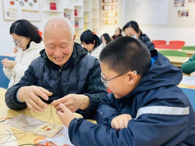“爸爸戴了我编的手绳,一定平平安安!”近日,在徐汇区田林街道党群服务中心新春绳结手作活动现场,爷爷带着小孙子,一起编一条本命年手绳,小孙子说要送给家里属马的爸爸。小小的红色生肖马坠,系着一家三代人之间朴素而真挚的关爱。
