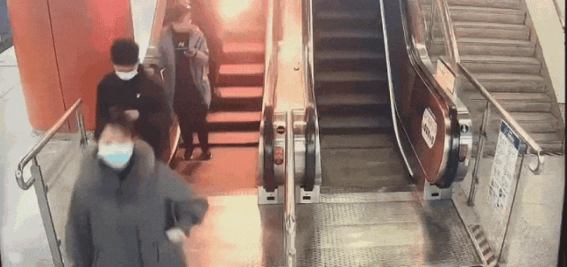 事发时一名乘客正乘坐手扶梯从站厅下行至站台,其外套一侧突然冒出明火,火势迅速蔓延并烧穿外套口袋。站台候车乘客察觉险情后,迅速向一侧躲避。