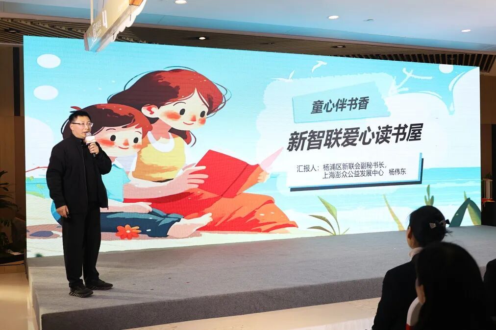 杨浦区新联会副秘书长、上海澎众公益发展中心理事长杨伟东分享了“童心伴书香”公益项目的实践历程,以“帮助他人、阳光自己”理念为指引,将公益善意转化为真实可感的社会温度。
