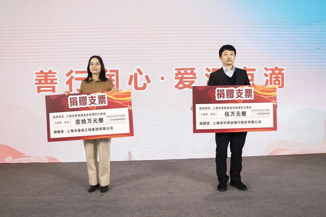现场还举行“善行润心・爱汇点滴”慈善捐赠仪式,上海市基础工程集团有限公司、上海农村商业银行股份有限公司等10家爱心企业代表举牌捐赠,用实际行动彰显企业的社会责任与担当,为杨浦慈善事业注入坚实力量。