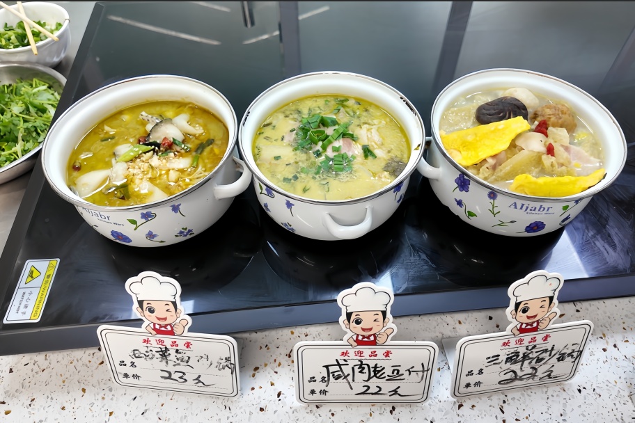 除了招牌瓦罐汤,三鲜、酸菜鱼、羊肉等多款热气腾腾的砂锅也同步登场,成为抵御严寒的“热门选择”。“中午来一锅,暖和又舒服,”正在用餐的张先生表示,“菜品实惠,口味也贴心。”