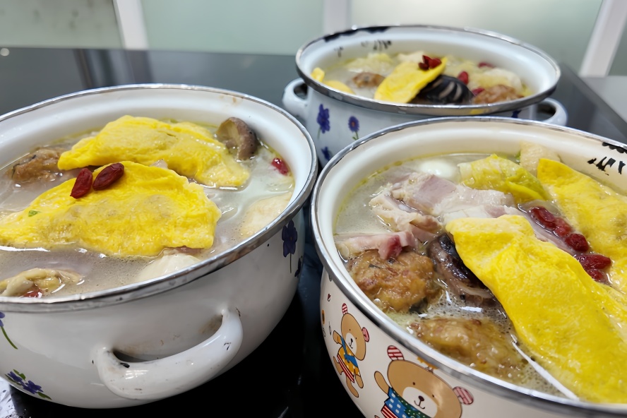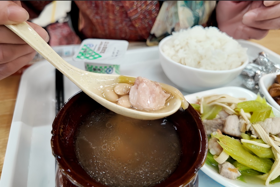“猪手黄豆汤卖得特别好,”大厨朱师傅在忙碌的间隙介绍道,“瓦罐汤选用新鲜猪手和优质黄豆,从前一天傍晚就开始用特制炉子慢炖,煨足时间才能保证汤汁醇厚、肉香浓郁。”居民李阿姨品尝后连连称赞:“冬天来上这么一罐,从里到外都暖和了,家里很难炖出这个味道。”