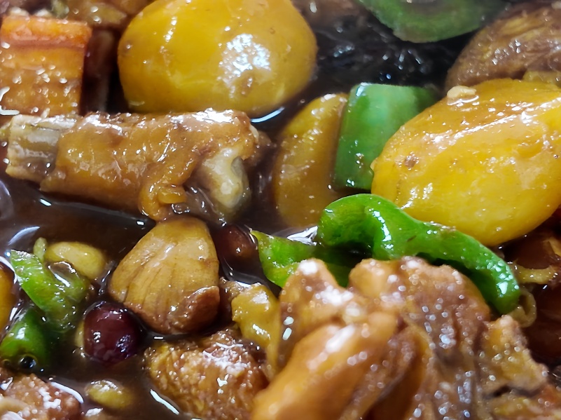 今年的菜单中,还有一道蕴含“中医智慧”的特别出品——芡实板栗烧鸡。这道菜由曹杨社卫中心医师提供专业指导:“冬季需注重温补脾胃。芡实能健脾止泻,板栗可养胃健脾,搭配温补的鸡肉,非常适合这个季节食用。”这道将养生理念融入日常餐饮的菜品,吸引了不少注重健康的居民。李阿姨在选菜时就特意点了它,“吃起来感觉确实很滋补,板栗糯,鸡肉香,味道很好。”