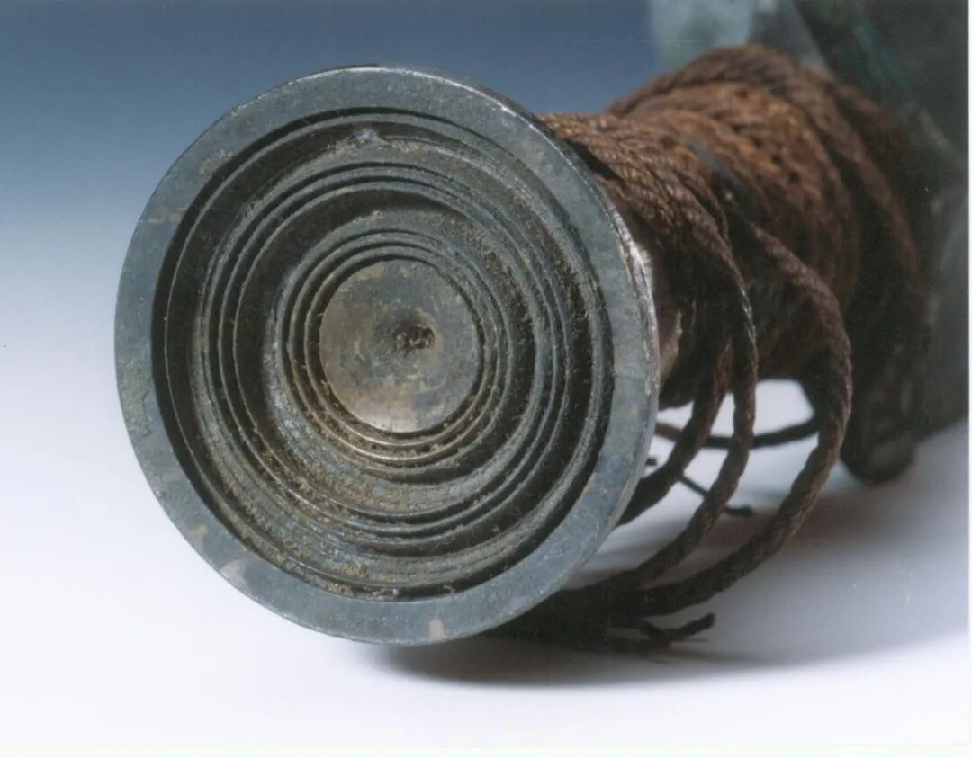 东周时期盛行佩剑之风,王公贵族刻意追求兵器的华美,其中青铜剑的剑首同心圆装饰以其高超的制作技术引起了科技史界的关注。剑首同心圆位于剑首端部,是由厚仅约0.2-0.8毫米,凸起约达0.5-2.2毫米,间距仅0.3-1.2毫米不等的多圈高同心度、高凸起、薄壁状凸棱组成,十分规整,同心圆凸棱圈数不等,高低错落,有的剑首同心圆凸棱多达11 道之多,在多圈同心圆的槽底,分布着极细凸起的绳纹,增加了剑首同心圆的美感和装饰性。