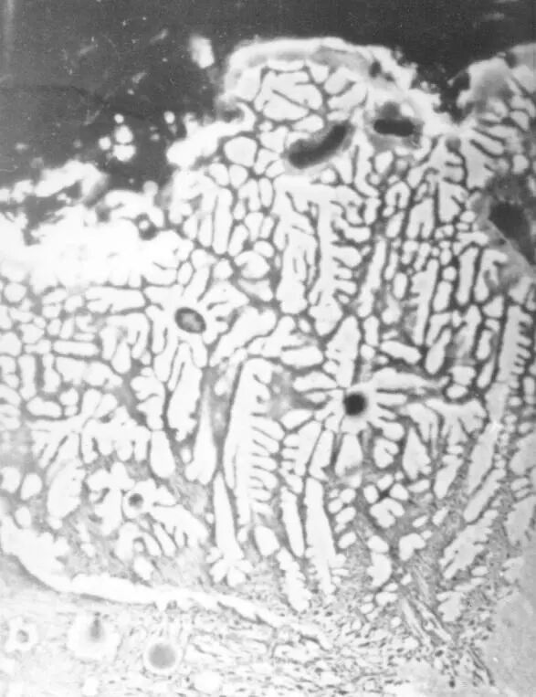青铜剑(铜-锡-铅)的金相组织 菱形纹饰剑表面细晶层的结构