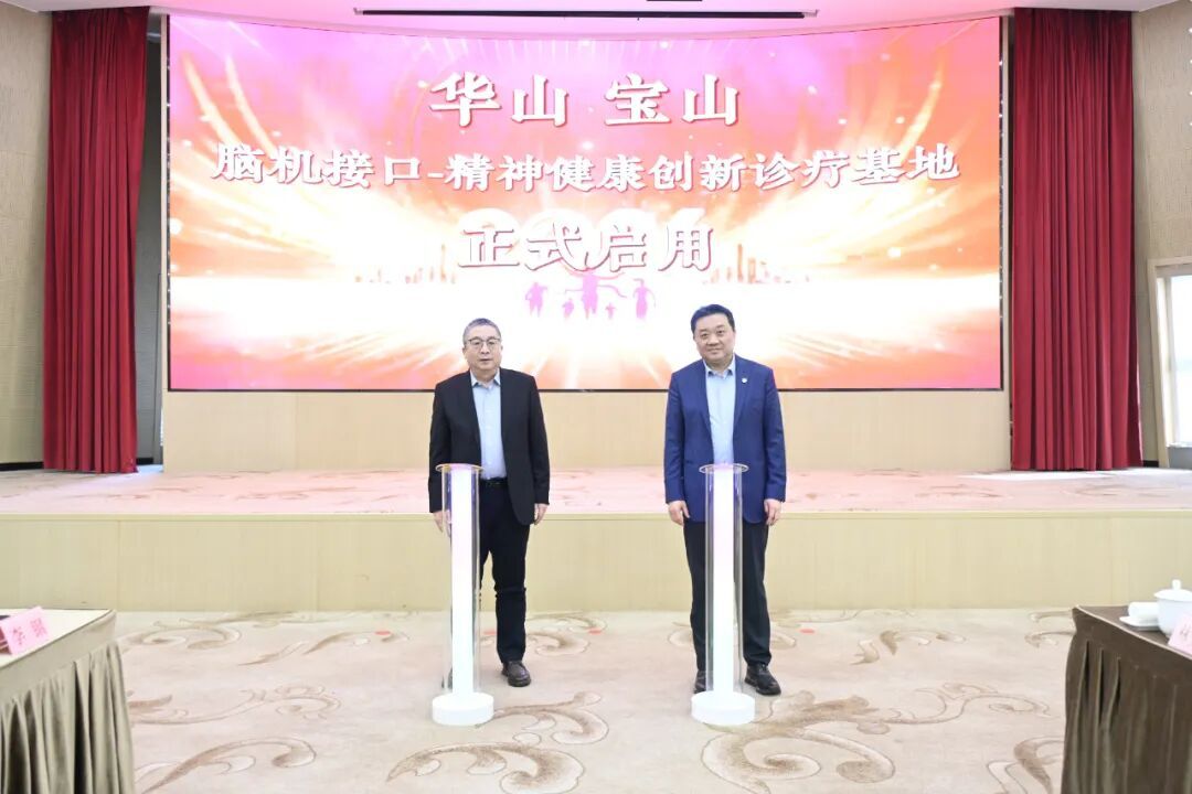 “华山宝山脑机接口-精神健康创新诊疗基地”正式启用,标志着脑机接口、人工智能等前沿技术正加速走向医疗场景,走向产业化应用。邓小冬、毛颖分别代表双方宣布创新合作启动。