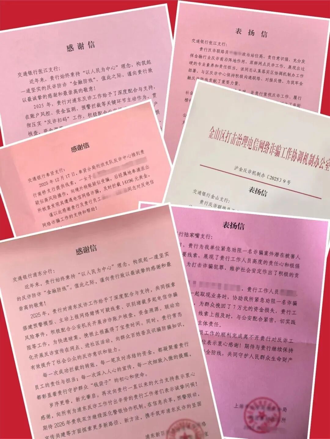电信网络诈骗手段层出不穷,守护群众“钱袋子”成为金融机构的重要使命。交通银行上海市分行始终践行“以人民为中心”的服务理念,将客户资金安全放在首位,通过强化风险防控、深化警银协作,构筑严密反诈防线。2025年成功堵截涉诈案件50余起,累计挽回客户资金损失1400余万元,用专业与担当赢得多方认可。 交通银行上海市分行收到多封感谢信 精准识别异常,跨区联动防诈 2025年4月,一名女士前往交行某网点,急切要求提前支取150万元定期存款并转账,资金用途表述前后矛盾。网点察觉跨区域大额异常后,立即启动警银协作机制,联系属地派出所核查。期间,客户离开且有陌生人陪同。警方迅速通报全区金融机构堵截,最终,成功堵截该笔高风险资金,避免了客户损失。 拦截保健品诈骗,警银协同守“钱袋” 2025年11月,一名老年客户来到交通银行某网点,急切要求支取7万元现金用于购买“特效保健品”,对产品信息含糊其词。银行工作人员凭借职业敏感性和风险意识判断可能涉诈,遂一边安抚客户,一边启动警银协作机制联系所属派出所。民警迅速到场,引导老人退出诈骗群、安装国家反诈中心APP,成功避免了资金损失。 敏锐洞察“杀猪盘”,警银联动保百万 2025年12月,某女士预约取现30万元,网点在执行“预约取现扫码报备”流程时,依托反诈中心大数据平台核查发现该女士近期在他行有大额取现、频繁贷款等异常记录,高度怀疑其被困“杀猪盘”诈骗陷阱,第一时间上报区反诈中心。警方连夜上门核查劝阻,最终成功为其保全了总计160万元资金。次日上午,客户特意致谢,由衷感谢该支行的认真负责。 每一次诈骗的成功拦截,背后都是警银协同守护群众财产安全的坚实力量。交行一线员工凭借高度警觉与专业素养,精准捕捉可疑信号,严格落实风控要求,成为防范诈骗的“第一道防线”;银行与公安机关构建起信息共享、快速响应、联合处置的高效机制,实现了从风险识别到前置阻断的闭环管理。 未来,分行将持续强化全员反诈技能培训,优化风险监测预警及应急处置流程,深化与各级公安部门的协同联动,始终以高度责任感与专业执行力,守护人民群众财产安全,为营造安全稳定的社会环境贡献金融力量。 供稿:交通银行上海市分行 我们提供上海银行业的资讯,与TA共同成长。这里是上海市银行同业公会微信平台。 欢迎赐稿:editor@shbanking.cn 扫码关注我们 获取更多银行资讯 长三角微信矩阵 江苏省银行业协会 浙江省银行业协会 安徽省银行业协会 宁波市银行业协会