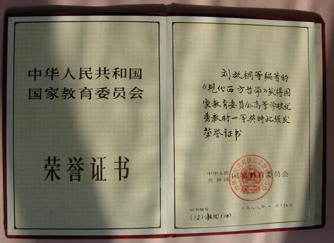 刘放桐等编著的《现代西方哲学》获得国家教育委员会高等学校优秀教材一等奖