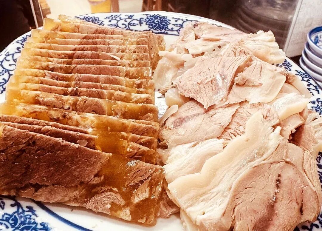 店铺主打的就是手工和新鲜,热气白切羊肉以最经典的口味示人,出锅时还蒸腾着缕缕白烟。皮肉相连处凝着一层晶莹的胶质,肉质酥软却不失弹性,蘸上一点特调酱油,入口是纯粹的羊脂香与清鲜的本味。