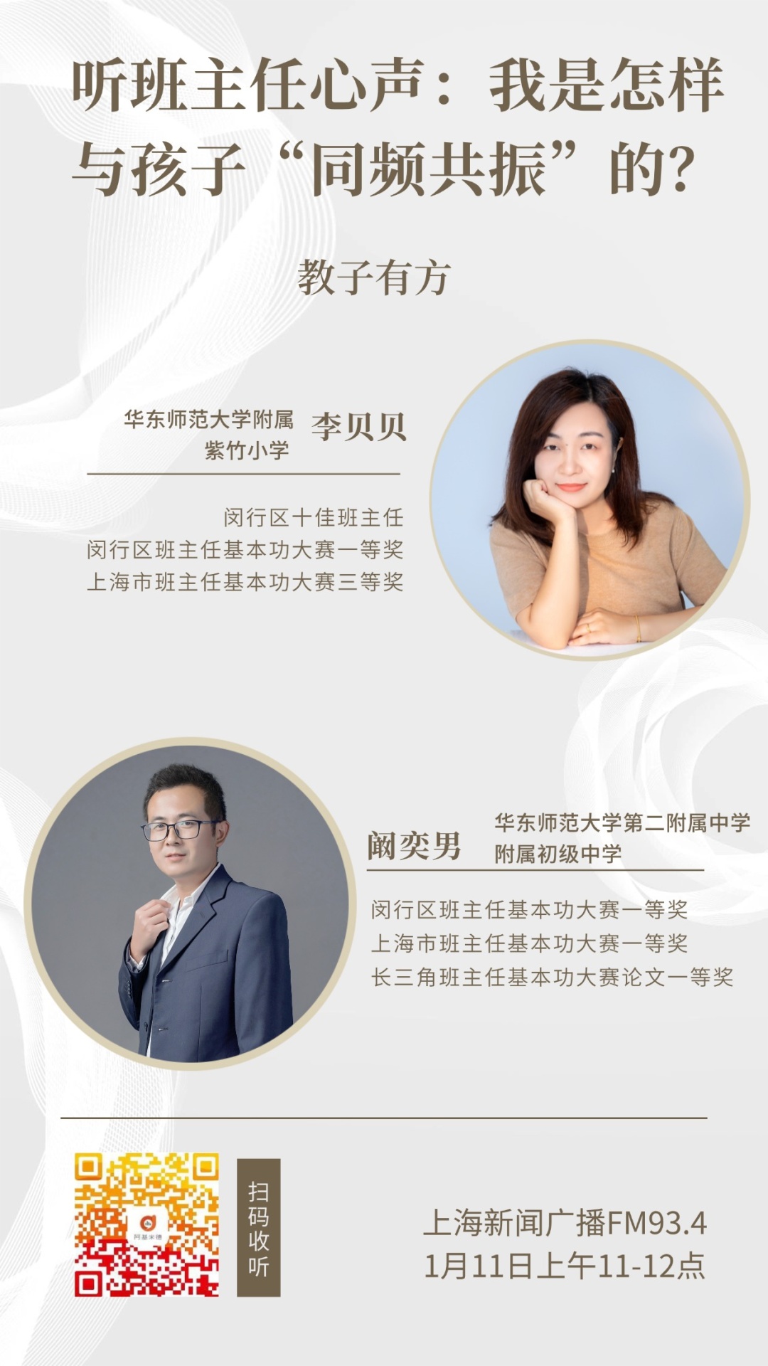 班主任如何走进孩子们的心中?1月11日上午11点晚上10点播出的《教子有方》一起来听听两位闵行优秀班主任的心声。