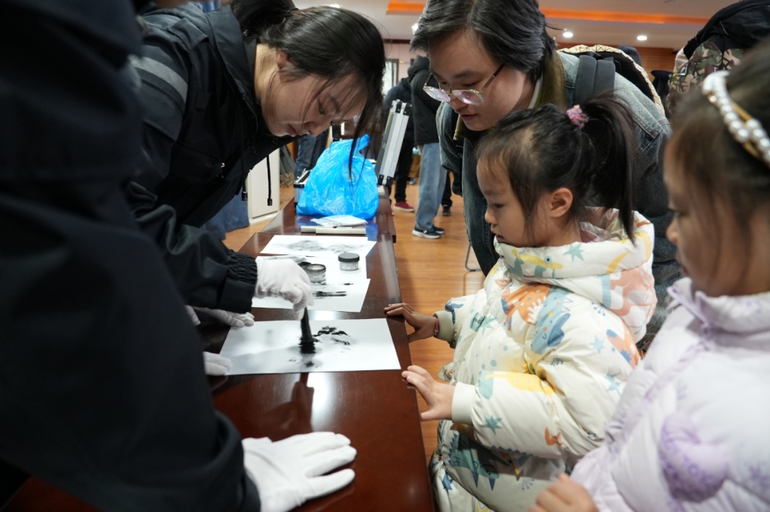 在刑侦勘验体验区,民警向孩子们展示了指纹提取、足迹识别等刑侦技术,讲解了刑侦民警如何通过蛛丝马迹寻找破案线索。孩子们在民警的指导下,亲手尝试使用刑侦工具提取指纹,体验了一把“小侦探”的乐趣。