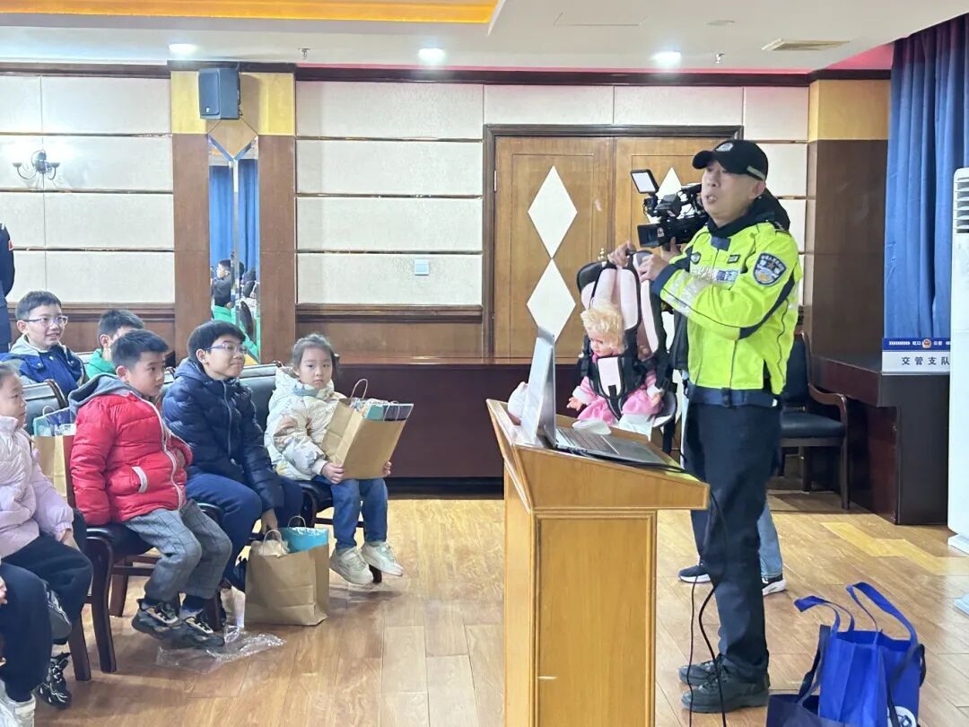 交通安全宣讲环节中,民警结合生动的案例,通过趣味问答、模拟场景等形式,向孩子们普及了过马路、乘坐交通工具等方面的安全知识,提醒大家时刻遵守交通规则,提高自我保护意识。民警还发放了交通安全宣传手册,让安全理念深入人心。