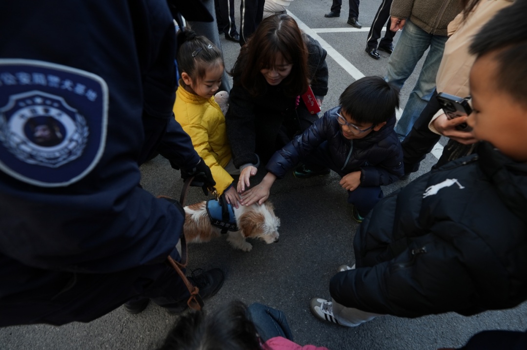 警犬互动区则充满了温情与欢乐。训练有素的警犬在训导员的指令下,动作敏捷、反应迅速,赢得了孩子们的阵阵掌声。展示结束后,孩子们在民警的引导下,小心翼翼地抚摸警犬,近距离感受警犬的温顺与忠诚。