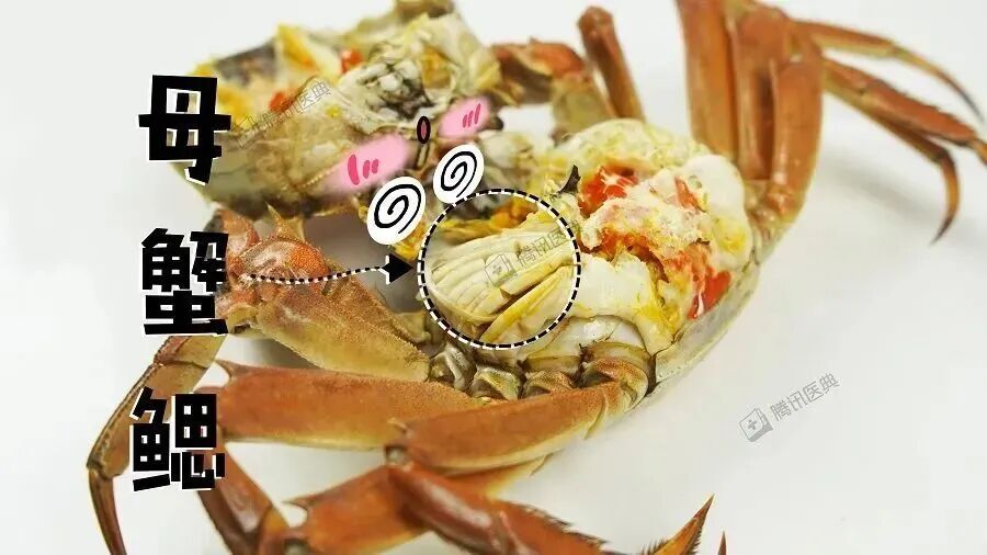 ② 蟹胃:蟹胃里面装着螃蟹吃进体内的食物,可能有泥沙等污染物,不要吃。