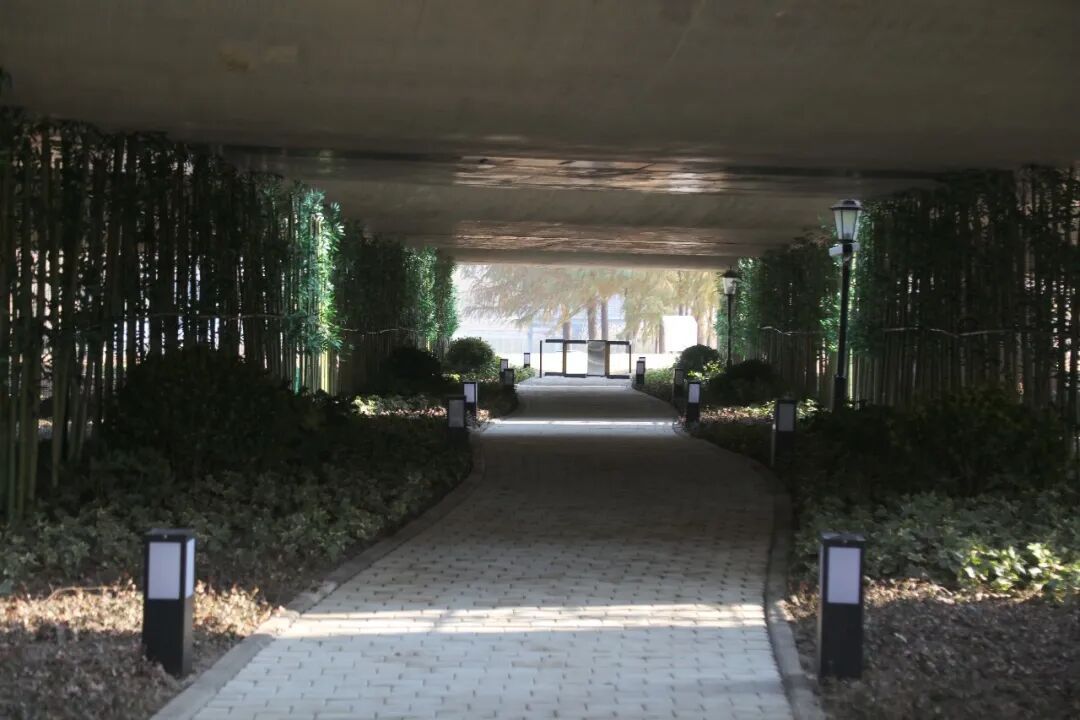 上海嘉定新城发展有限公司工程部主任魏庆海介绍,通道长约41米、宽6米,其中透水砖步道2米宽,步道两侧采用1.5米高珊瑚绿篱进行视野隔离,并选用耐阴植物绿化景观。同时,通道旁设置导向标识,并增加夜间景观灯及监控,保障市民夜间通行安全。